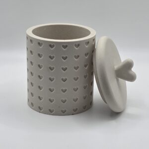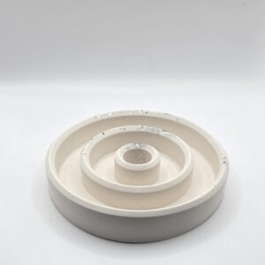 Toutes les pièces sont fabriquées en Jesmonite, un matériau né en Angleterre dans les années 1980. À l’origine utilisée dans le design et l’architecture, la Jesmonite séduit aujourd’hui les artisans pour sa texture soyeuse, sa solidité et son aspect minéral.