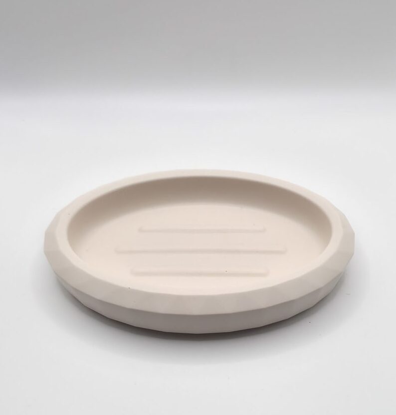 Porte-savon rond en jesmonite AC100, design facetté et épuré. Simple, pratique et minimaliste.